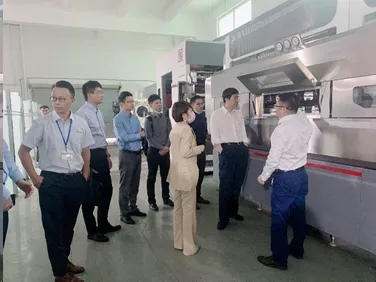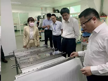 在生产车间,杨志明董事长向国家中小企业发展基金及深交所领导介绍了公司拥有专利技术、处于国际领先水平的双面并联涂布机,目前该技术已经突破日本技术水平,在国内率先实现了高精度、高效率,比当前折返式双层高速涂布机节能35%以上。国家中小企业发展基金及深交所领导还参观了国内领先的专利模头加工中心、涂布辊压分切自动化线、高真空智能烘烤线等产品。