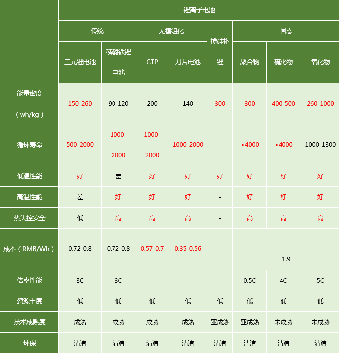 传统锂离子电池与新技术对比