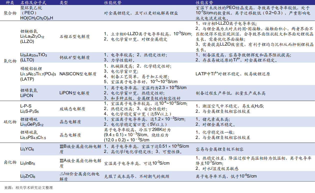 四种技术路线固态电解质性能优劣势对比