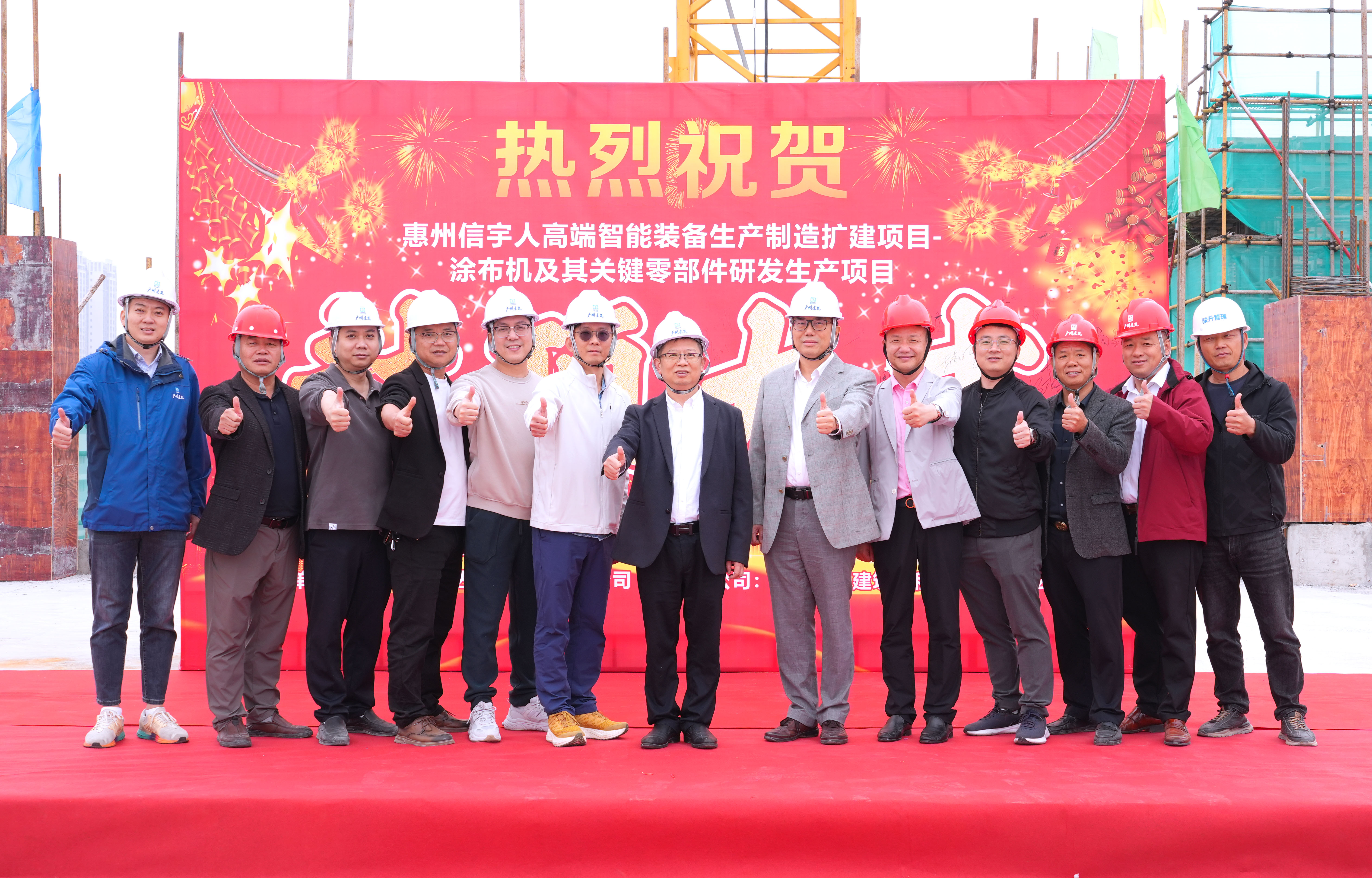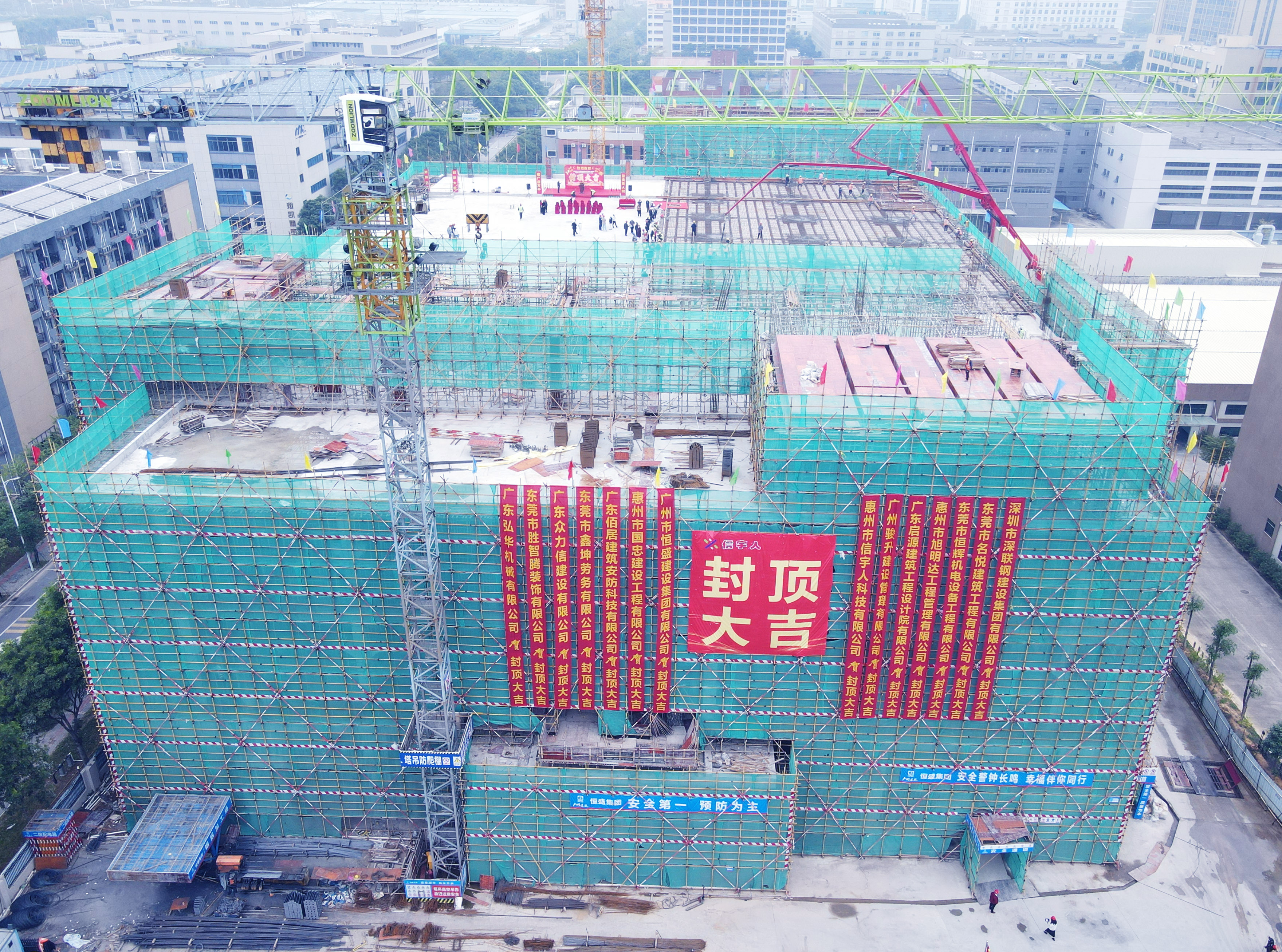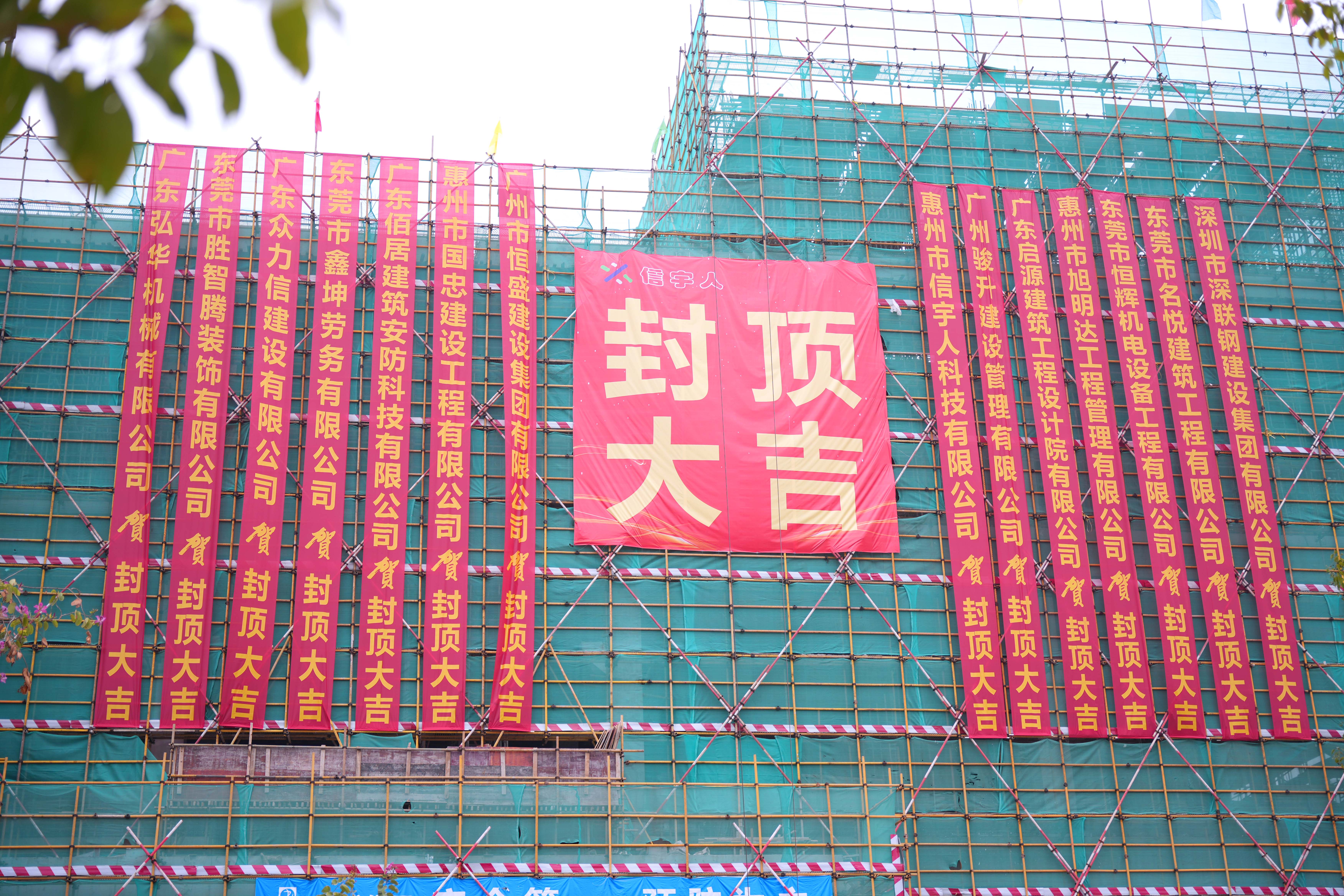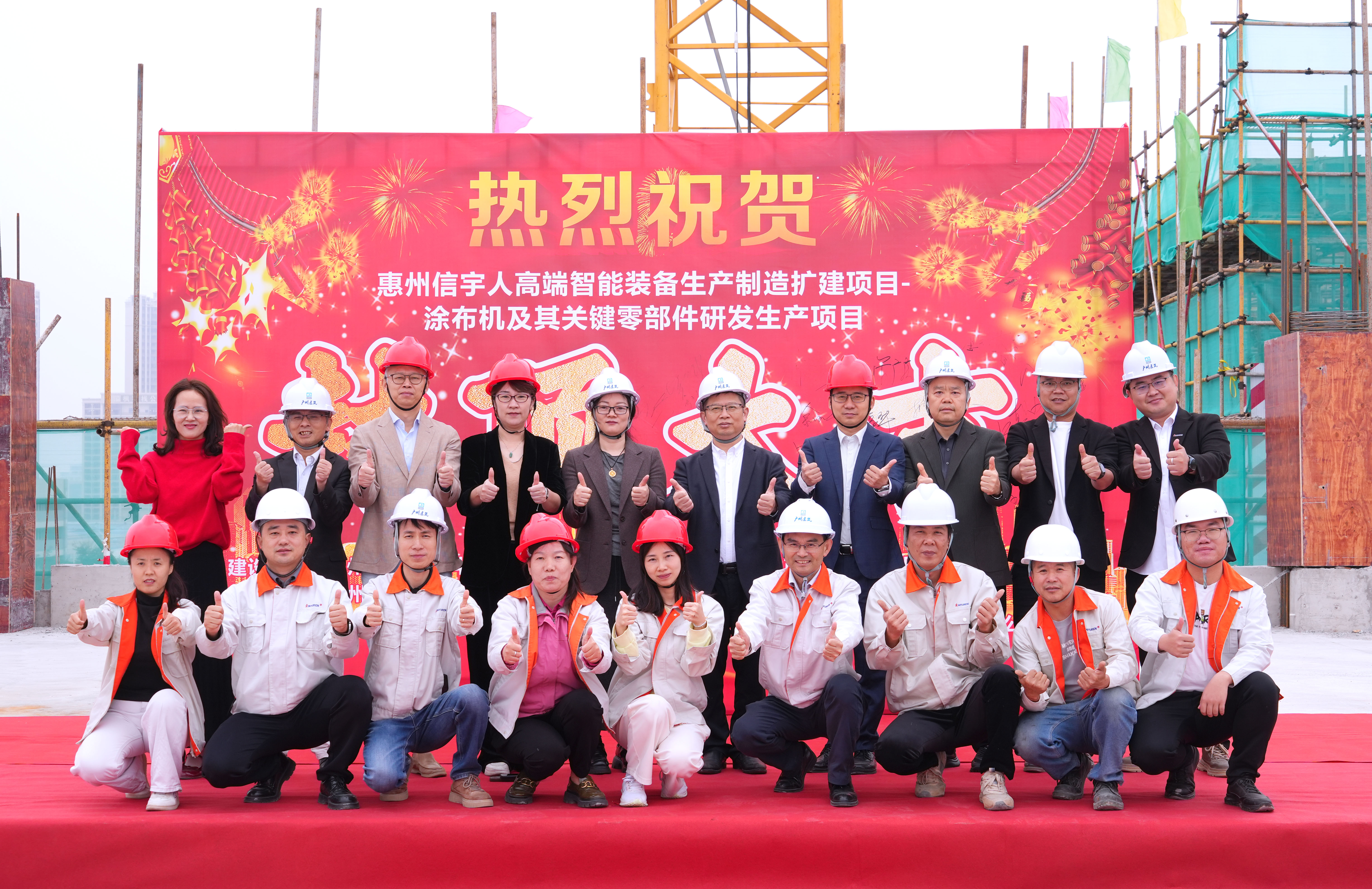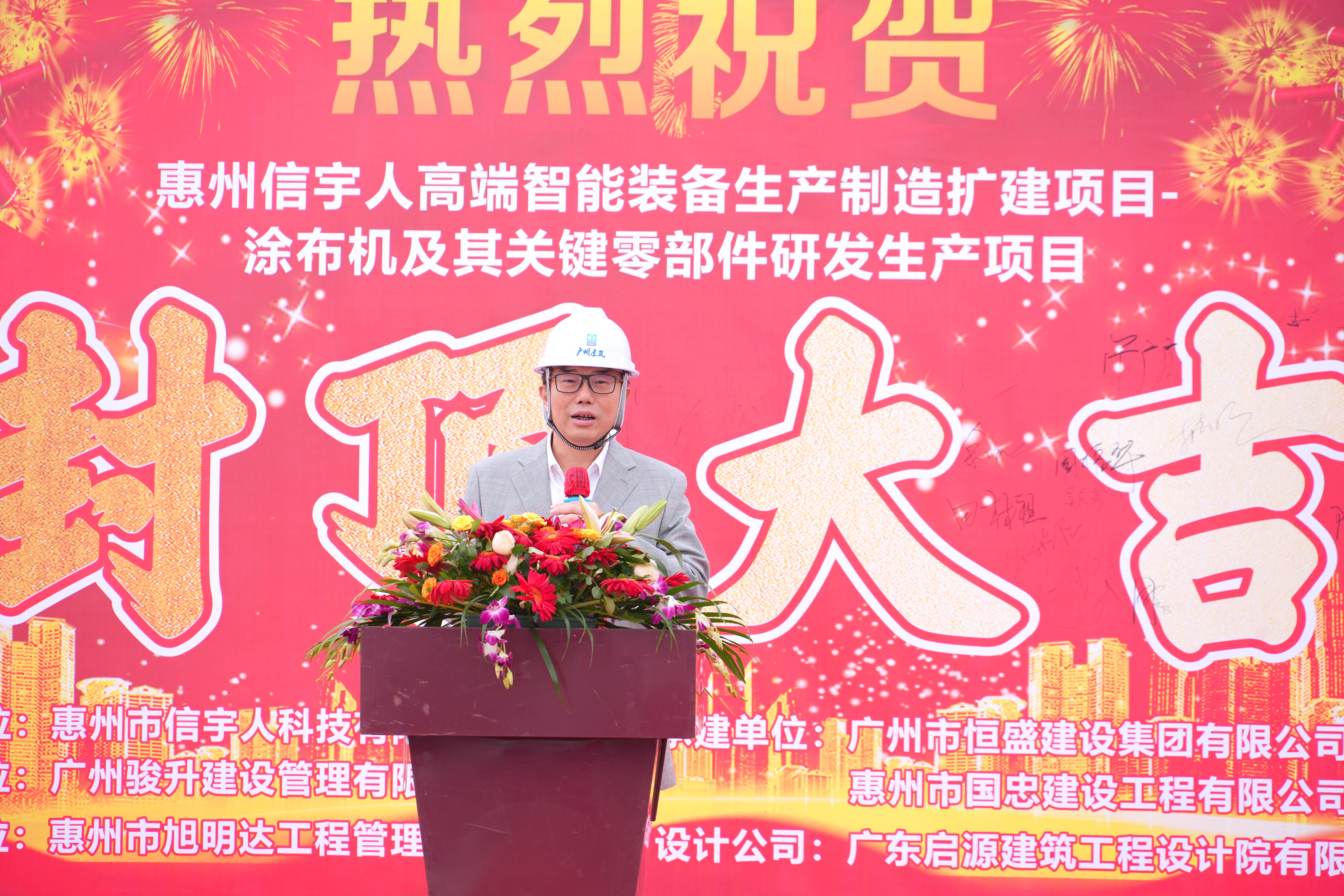 伴随着喜庆的现场氛围,在政府单位代表—惠州市仲恺高新区东江科技园管委会总工会主席、项目建设招商专班负责人胡由在,太阳成集团tyc董事长杨志明及公司高管、相关管理人员,承建单位—广州恒盛集团总经理曾广庆、副总经理欧建辉等一众人员的共同见证下,太阳成集团tyc惠州第二生产园区(惠州太阳成集团tyc高端智能装备生产制造扩建项目—涂布机及其关键零部件研发生产项目)喜封金顶!